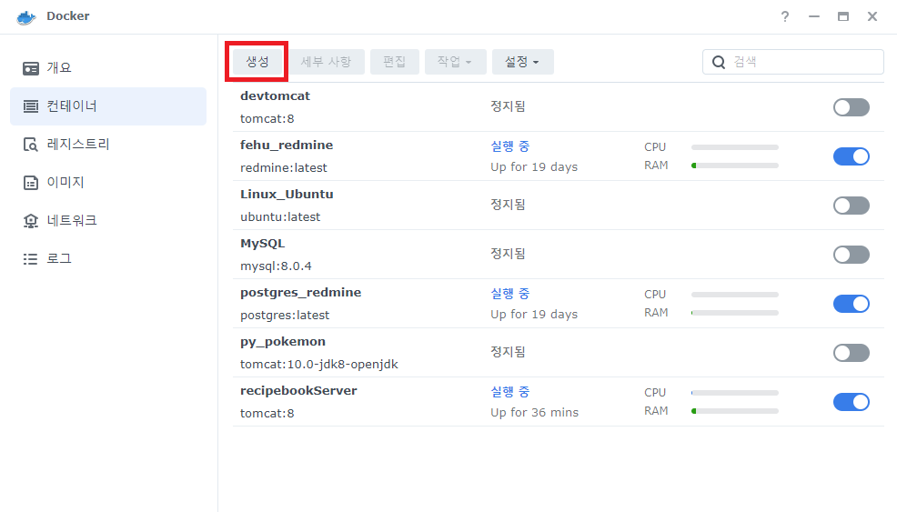 ※ 포트 번호 설정 후 접근이 되지 않을 시 제어판 -> 외부엑세스 에서 포트번호를 추가해줘야 한다.